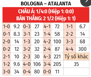 Các chuyên gia đánh giá khả năng Bologna giành chiến thắng kèo châu Á cao hơn Atalanta, dựa trên phong độ hiện tại và thành tích đối đầu. Tỷ lệ chấp góc cũng nghiêng về Bologna, đội đã thắng kèo góc trong 8 trận sân nhà gần nhất.