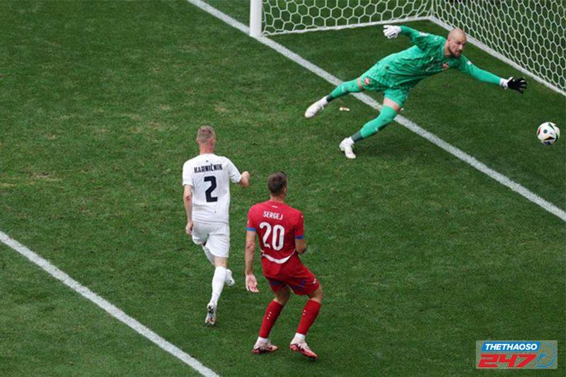 Aleksandar Mitrovic, ngôi sao tấn công của Serbia liên tục được trao cơ hội nhưng không thể tận dụng. Anh bỏ lỡ nhiều pha dứt điểm ngon ăn và không thể vượt qua sự xuất sắc của thủ môn Jan Oblak của Slovenia.