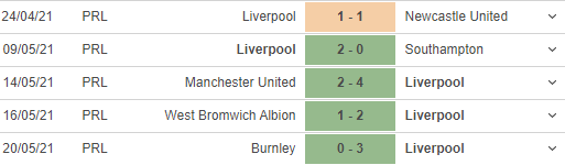 2 trận gần nhất của Liverpool có tổng bàn thắng là số lẻ. 3/4 lần đối đầu gần nhất của 2 đội có kịch bản tương tự.