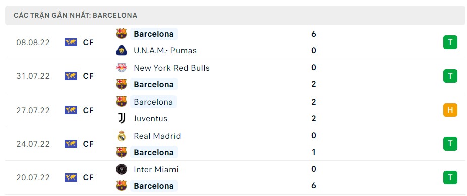 Phong độ thi đấu gần đây của Barcelona