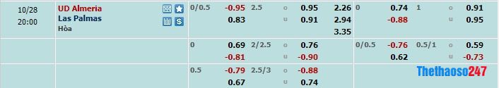 HT: Almeria*2.88; Hòa*2.11; Las Palmas*3.60