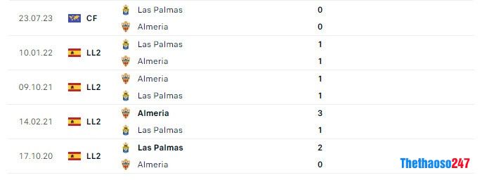 Lịch sử đối đầu giữa câu lạc bộ Almeria vs Las Palmas
