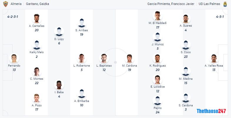 Đội hình ra sân dự kiến giữa câu lạc bộ Almeria vs Las Palmas