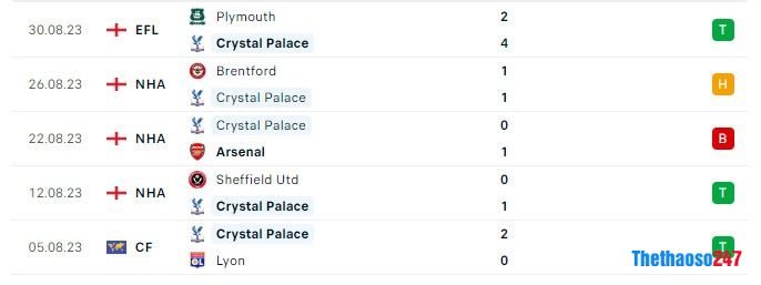 Phong độ gần đây của câu lạc bộ Crystal Palace