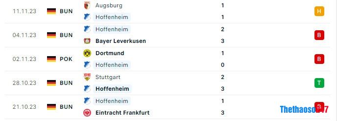 Phong độ gần đây của câu lạc bộ Hoffenheim