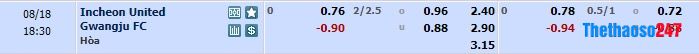 Tỷ lệ chiến thắng giữa CLB Incheon vs Gwangju FC