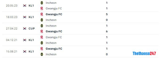 Lịch sử đối đầu giữa CLB Incheon vs Gwangju FC
