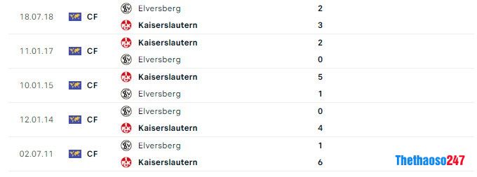 Lịch sử đối đầu giữa CLB Kaiserslautern vs Elversberg