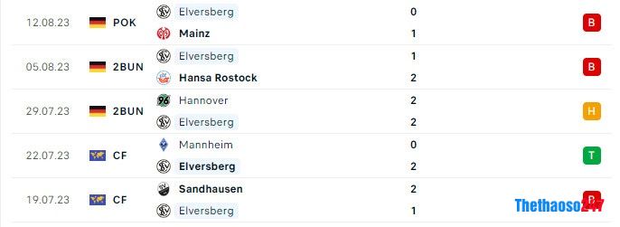Câu lạc bộ Elversberg trận gần đây: thắng 0, hòa 1, thua 1, ghi được 3 bàn thắng, để thua 4 bàn.