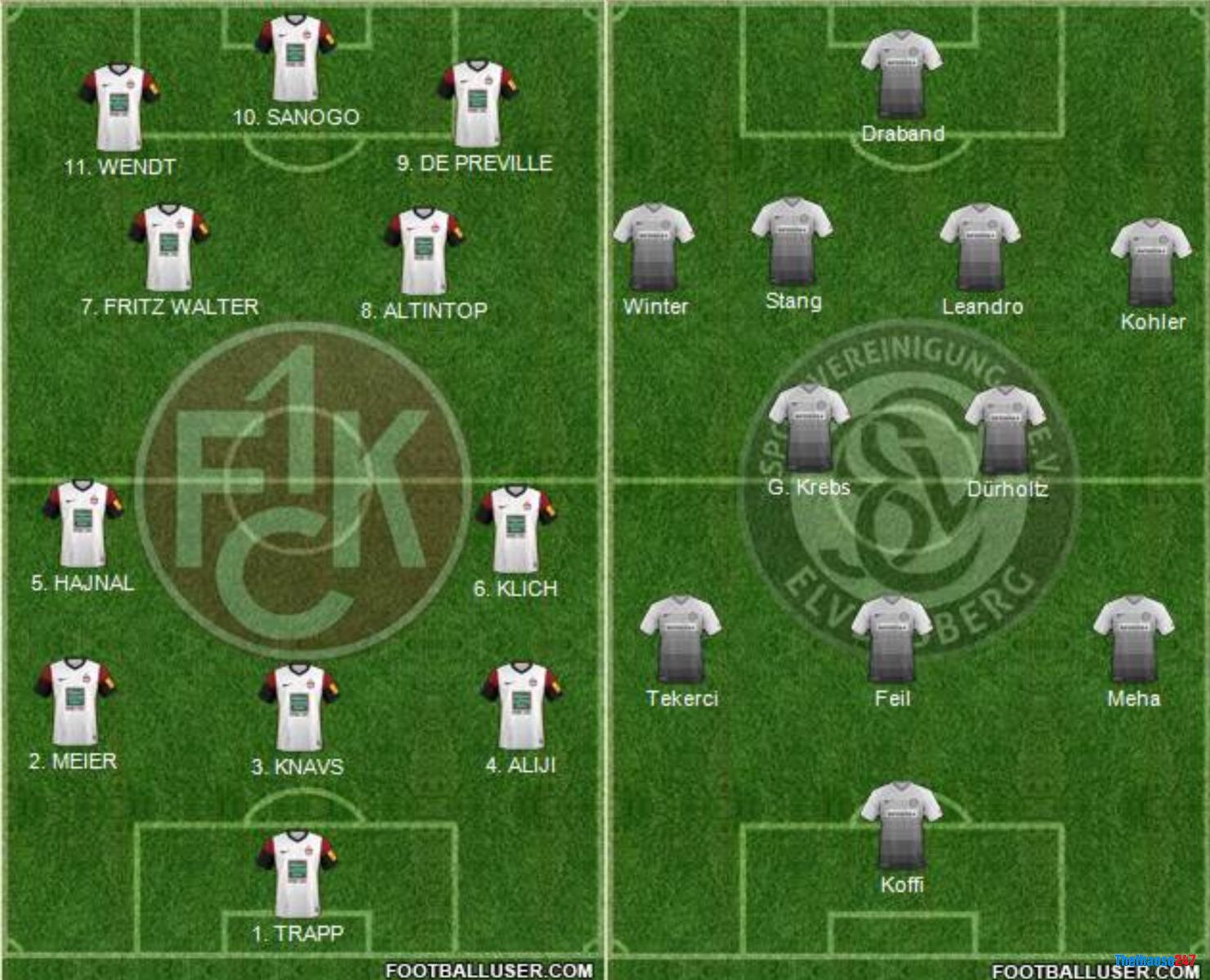 Câu lạc bộ Kaiserslautern: Spahic, Schad, Kraus, Winkler, Hlousek; Ritter, Ciftci, Rieder, Redondo; Pourie và Hanslik.