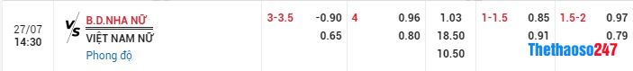 FT: -3/3.5 Nữ Bồ Đào Nha *-0.90; 3/3.55 Nữ Việt Nam *0.65