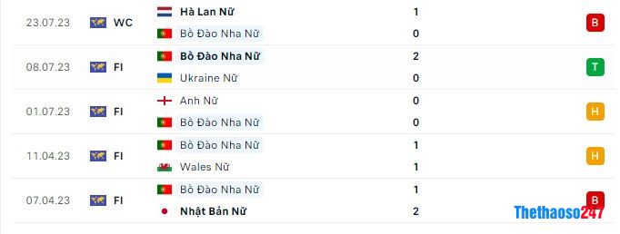 Phong độ gần đây Nữ Bồ Đào Nha