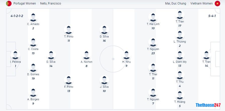 Đội hình ra sân dự kiến Nữ Bồ Đào Nha vs Nữ Việt Nam