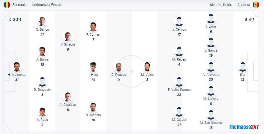 Đội hình ra sân dự kiến giữa đội tuyển Romania vs Andorra