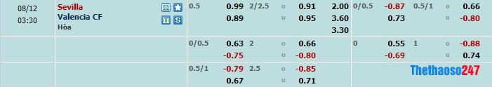 HT: Sevilla*2.66; Hòa*2.00; Valencia*4.10