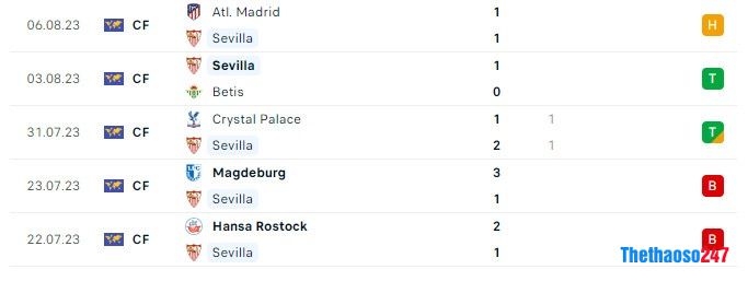 Câu lạc bộ Sevilla 10 trận gần đây: thắng 6, hòa 1, thua 3, ghi được 18 bàn thắng, để thua 13 bàn.