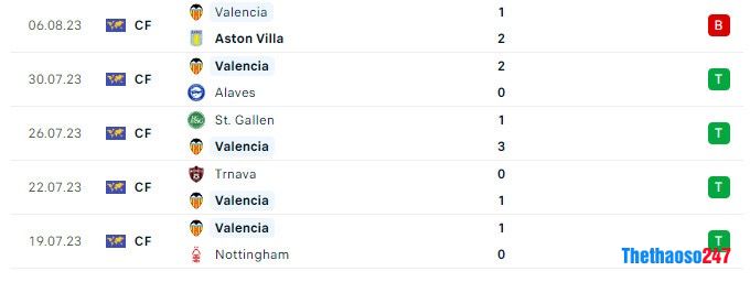 Câu lạc bộ Valencia trận gần đây: thắng 6, hòa 2, thua 2, ghi được 14 bàn thắng, để thua 8 bàn.