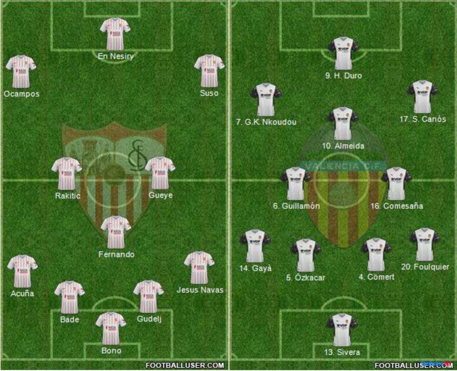 Đội hình ra sân dự kiến giữa CLB Sevilla vs Valencia