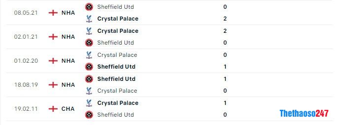 Lịch sử đối đầu giữa CLB Sheffield United vs Crystal Palace