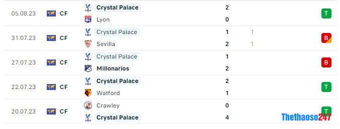 Câu lạc bộ Crystal Palace trận gần đây: thắng 4, hòa 3, thua 3, ghi được 17 bàn thắng, để thua 11 bàn.