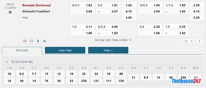 Soi kèo châu Á, kèo Dortmund vs Frankfurt