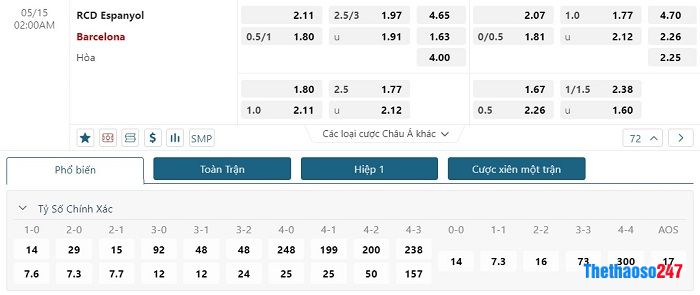 Soi kèo châu Á, kèo Espanyol vs Barcelona