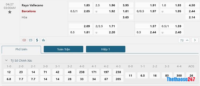 Soi kèo Vallecano vs Barcelona trong khuôn khổ giải đấu La Liga mùa bóng 2022/2023. Hãy đến với những thông tin quan trọng trước giờ bóng lăn cùng Thethaoso247.