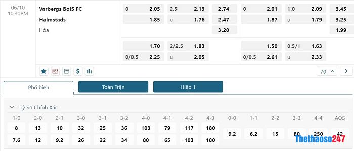 Soi kèo tỷ số Varbergs BoIS vs Halmstads