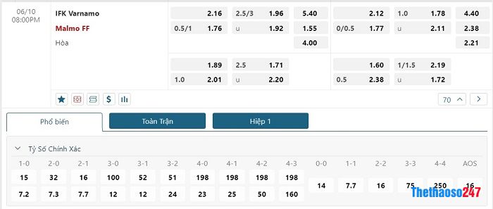 Varnamo đã thắng 3 trận nhưng thua đến 7 trận trong 10 vòng đấu gần đây, do đó họ được đánh giá khá thấp với mức kèo +3/4 bàn. Trái ngược với đó, Malmo FF đã giành chiến thắng trong 9 trận sau 11 trận đấu và rõ ràng họ nhận được sự tin tưởng từ các CĐV trung lập. Tuy vậy, thầy trò HLV H.Rydstrom sẽ không dễ dàng giành chiến thắng đậm nếu đội chủ nhà chơi phòng ngự và hướng đến kết quả hòa. Thường thì Varnamo chỉ thua với cách biệt 1 bàn, điều này cần được lưu ý.