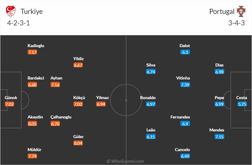 - Thổ Nhĩ Kỳ (4-2-3-1): M. Günok; M. Müldür, S. Akaydin, A. Bardakci, F. Kadioglu; H. Çalhanoglu, K. Ayhan; A. Güler, O. Kökçü, K. Yildiz; B. Alper Yilmaz.